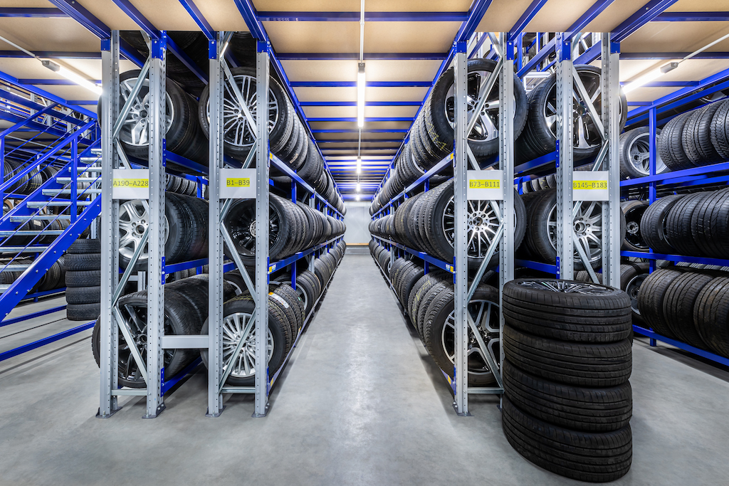 - Fahrregale für Reifen – maximieren den Lagerplatz, da sie die Notwendigkeit für zusätzliche Gänge minimieren.